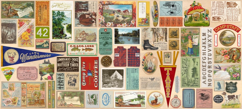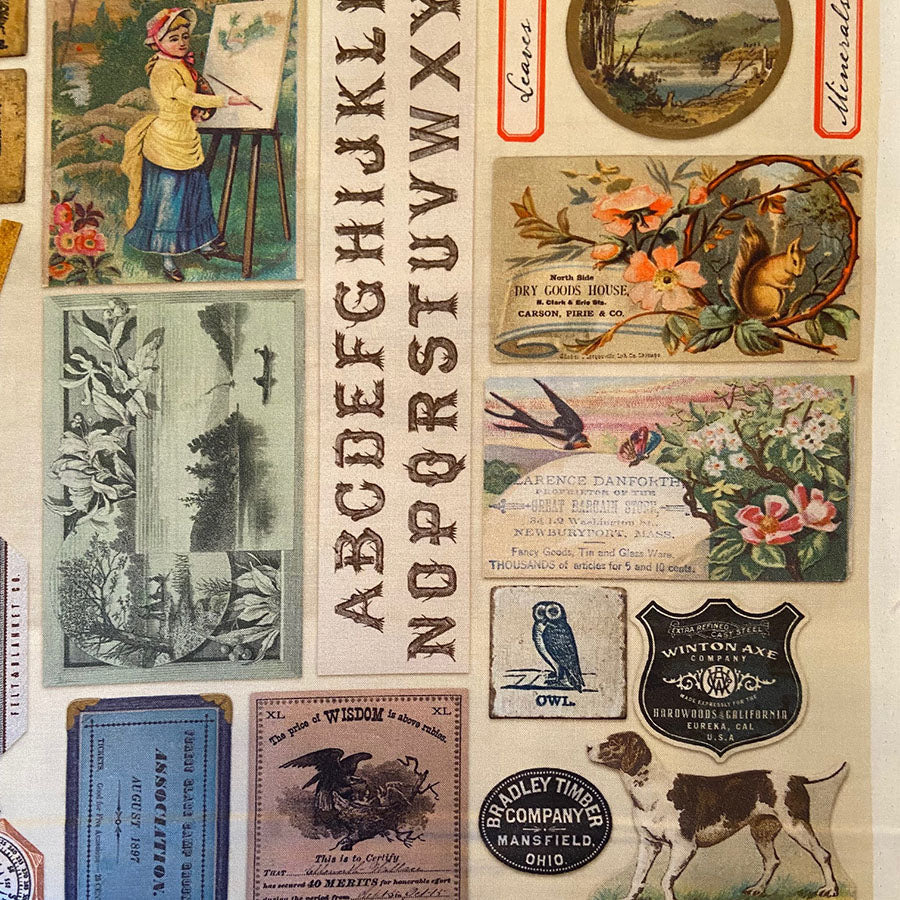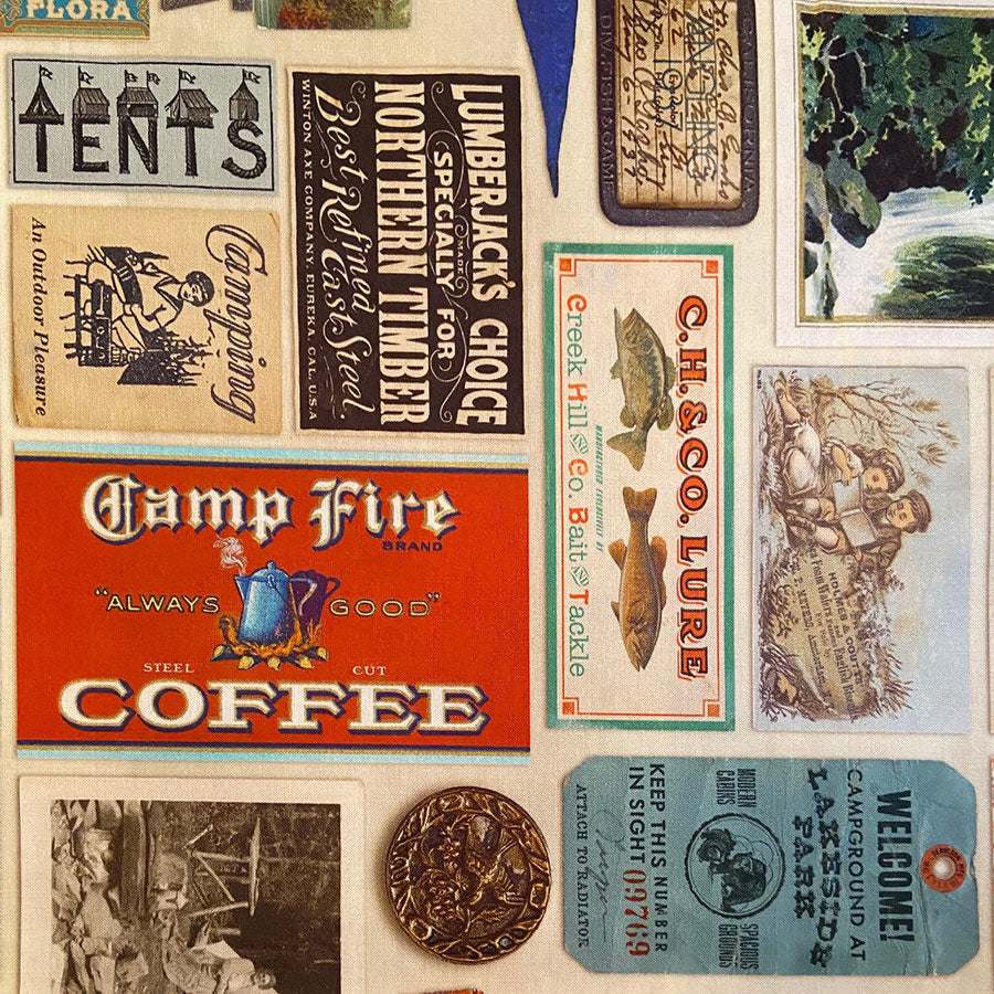 Outdoorsy Collage Tags in Natural by Cathe Holden for Moda