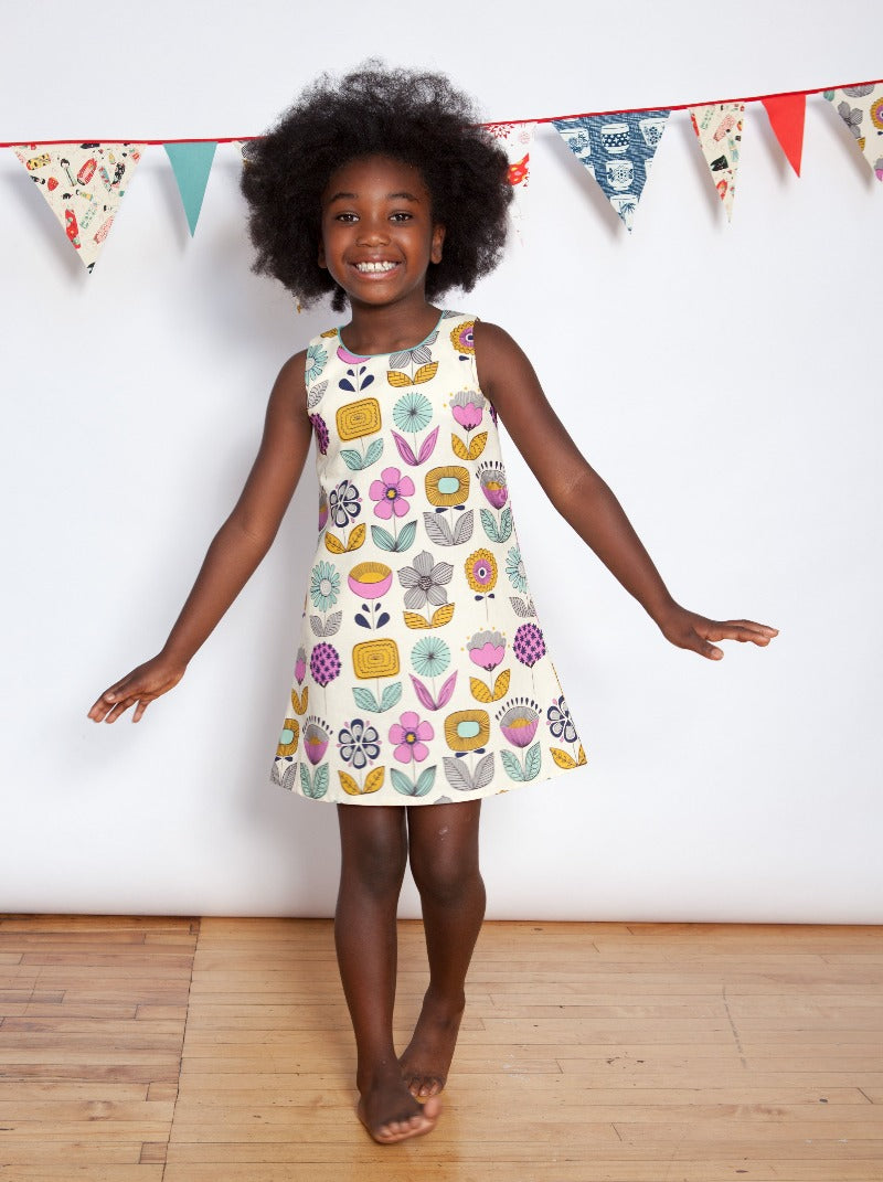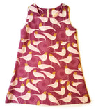 This a-line dress features a lovely purple colour and a mod bird print, a great combination! Wear it alone in the summer, layer it when it's cooler -- you can dress it up if you like, but it's durable enough for every day. It's made of high quality, easy to care for cotton, is super comfortable, and layers beautifully for wear in different seasons.