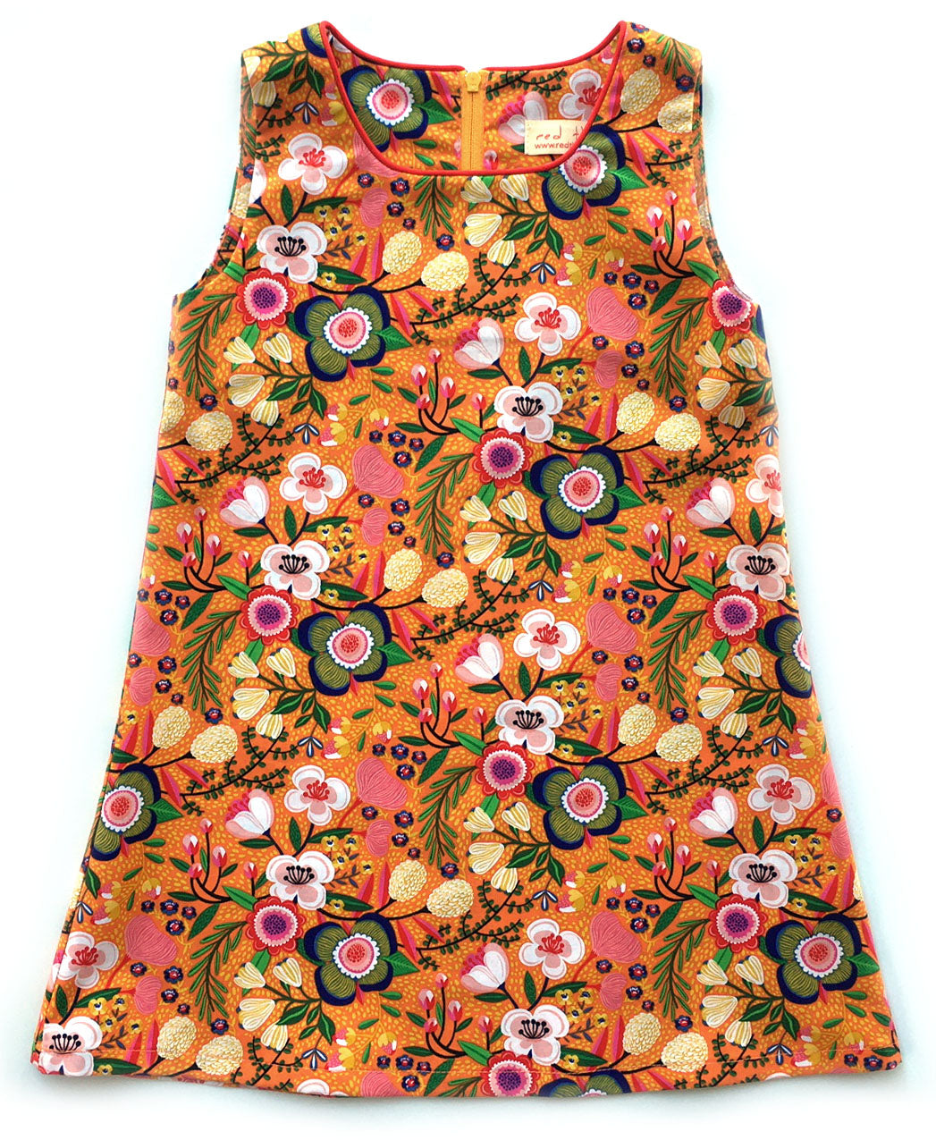 Available in sizes 2-6. 100% cotton with a zippered back, handmade in Toronto
