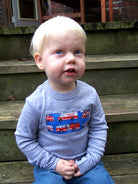 This tee (available in grey, navy, and red) features a panel of ambulances, fire trucks and police cars, appliqued on the chest.
