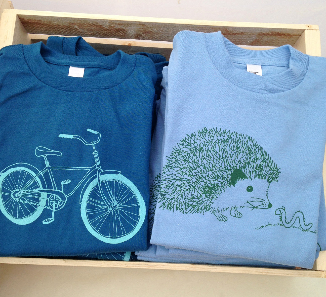 This adorable illustration of a hedgehog meeting an inchworm is reprinted on soft sky blue 100% cotton. A favourite of girls and boys, this tee is available up to size 12 years.