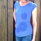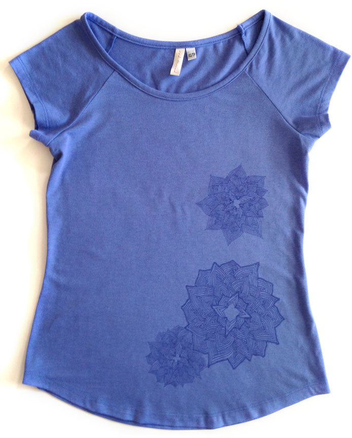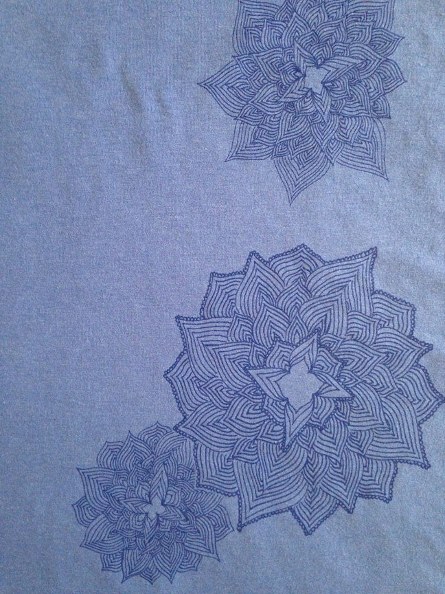 Red Thread's new Bamboo Tee features cute raglan cap sleeves and a flattering cut, and is made from a very soft, comfortable bamboo/cotton blend fabric. The silkscreened image is named for the artist (my teenaged daughter Izzy), who loves creating detailed flower drawings. This tee has a beautiful feel and great washability.