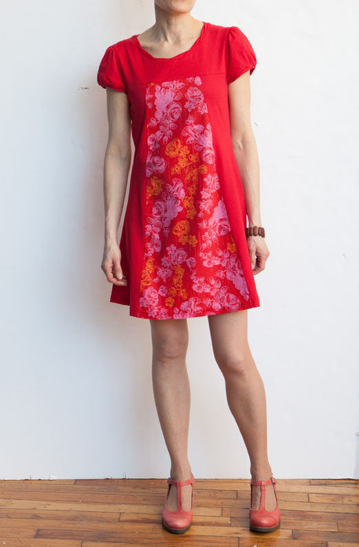 Red Thread's Weekend Dress is an easy, comfortable dress that fits well as a dress, or as a tunic over jeans or leggings. Made from a supersoft bamboo/cotton blend (the pale purple is 100% organic cotton), highlighted with a panel of luxurious Liberty fabric or silky Italian cotton.