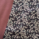 Deep purple: 66% bamboo, 28% cotton, 6% spandex inset with a black 100% cotton tana lawn floral print from Liberty of London (detail shown)