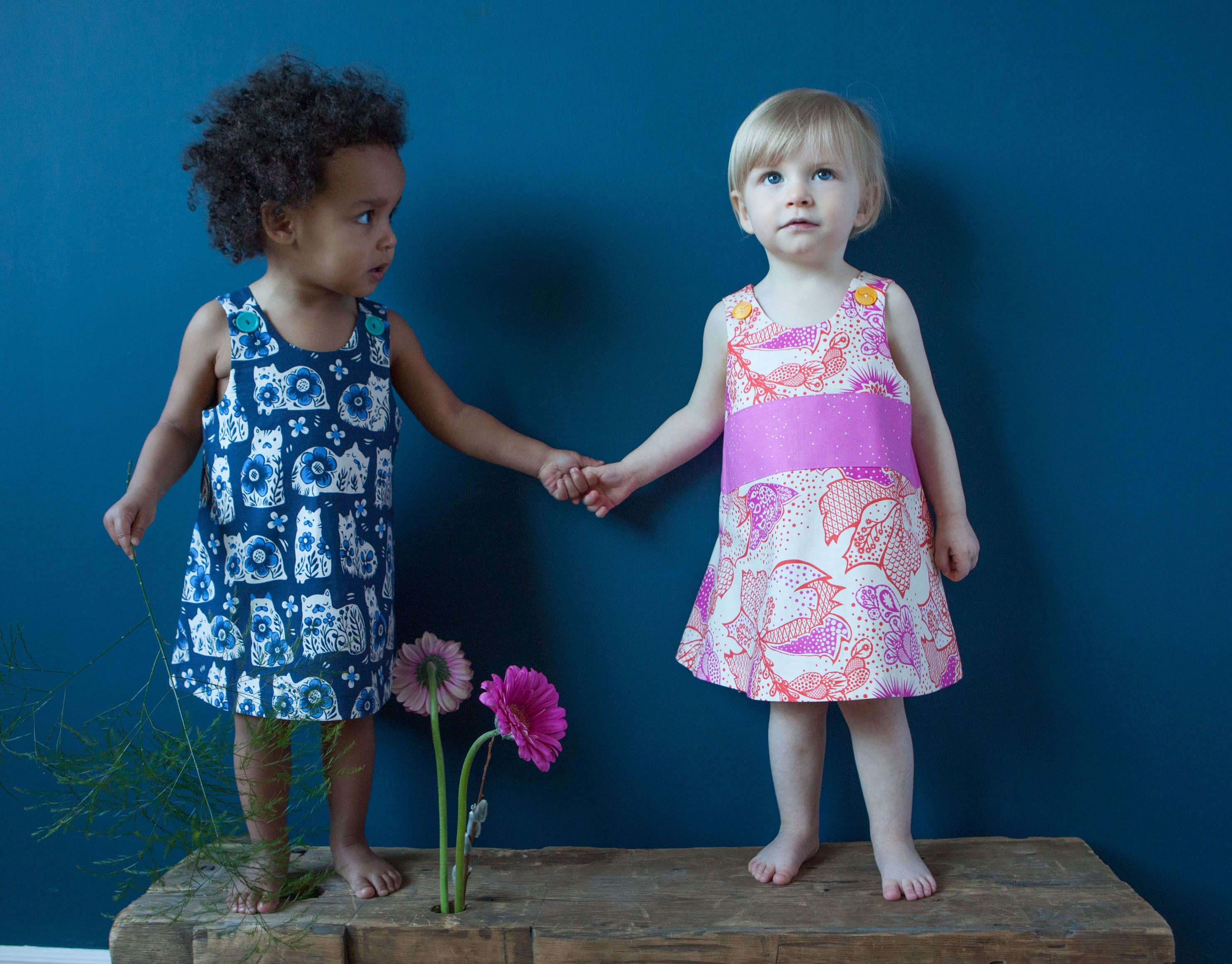 The Caterpillar Dress has been Red Thread's bestseller for 15 years! Named for its ability to transition from a baby dress on a one-year-old to a shorter dress on a two-year-old and then to a cute top on a three (or sometimes four)-year-old, Caterpillar Dresses are a great gift for a newborn to 2-year-old. They fit for ages, and look great layered year-round. This is a fabulous wardrobe staple that really stands the test of time. And because the cotton fabrics are such high quality, they wash well and look great for years, so they can be worn by multiple children and still look great!