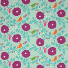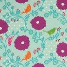 This vibrant Japanese fabric by renowned designer Etsuko Furuya is printed on a bright turquoise background, on a lightweight cotton/linen blend fabric. This fabric is long out of print and hard to find. Scale: birds are about 3.5" from beak to tail.