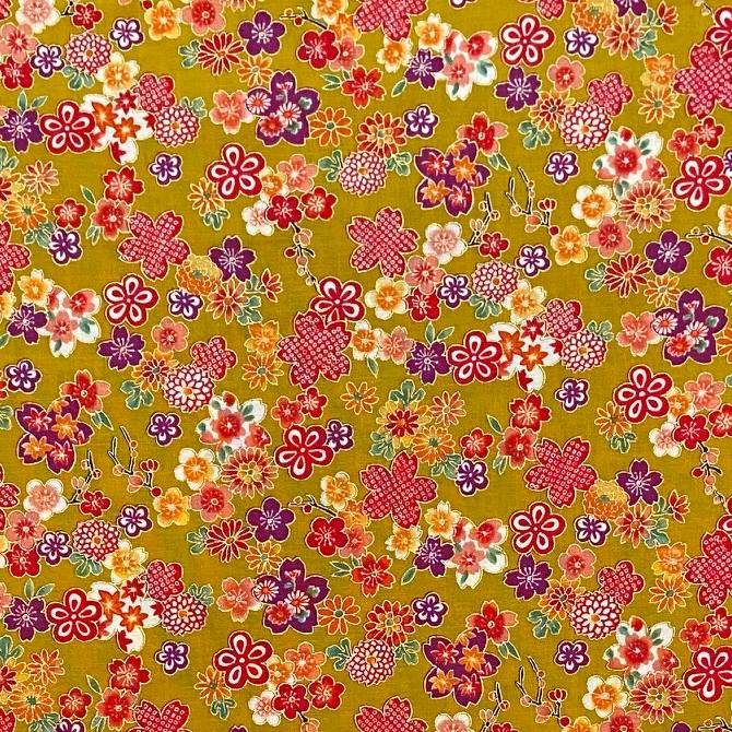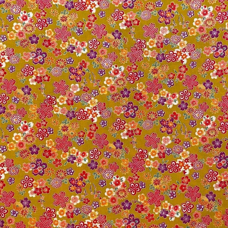 Sevenberry is a wonderful collection of Japanese fabrics. The Sakura Brook Metallic Collection features traditional Japanese florals in gorgeous rich colour with gold metallic accents.