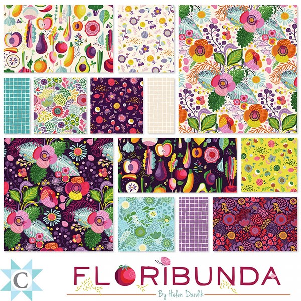 Designed by Helen Dardik for Clothworks, this gorgeous fruit-and-veggie print is from the Floribunda collection. This collection is richly coloured and full of beautiful detail.