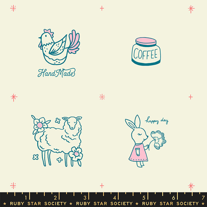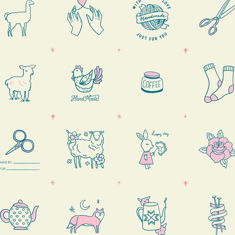 This wonderful print is part of the Purl collection by Sarah Watts for Moda's Ruby Star Society. The Purl collection is Sarah Watts' love note to yarn, knitting, tea, and all things cosy.