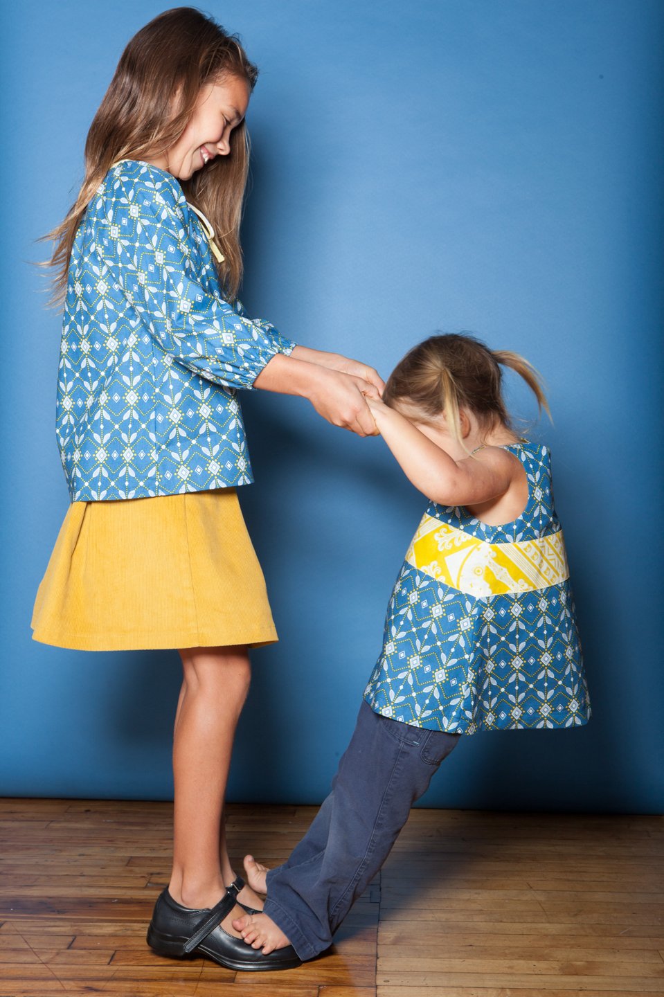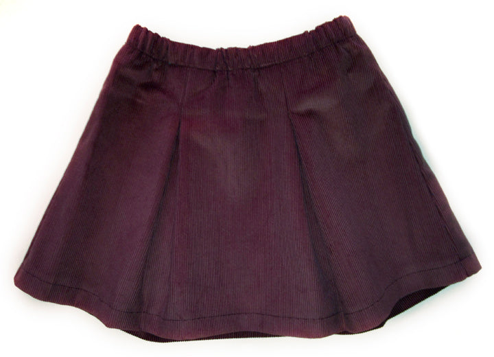 This lovely box-pleated skirt features a rich dark brown corduroy with lovely body and softness. It features an elasticized waist for comfort, and a comfortable length for running, dancing and playing.