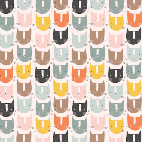 This lovely cat faces print is from the "Emi & the Bird" collection by Jilly P for Dashwood Studio (UK).