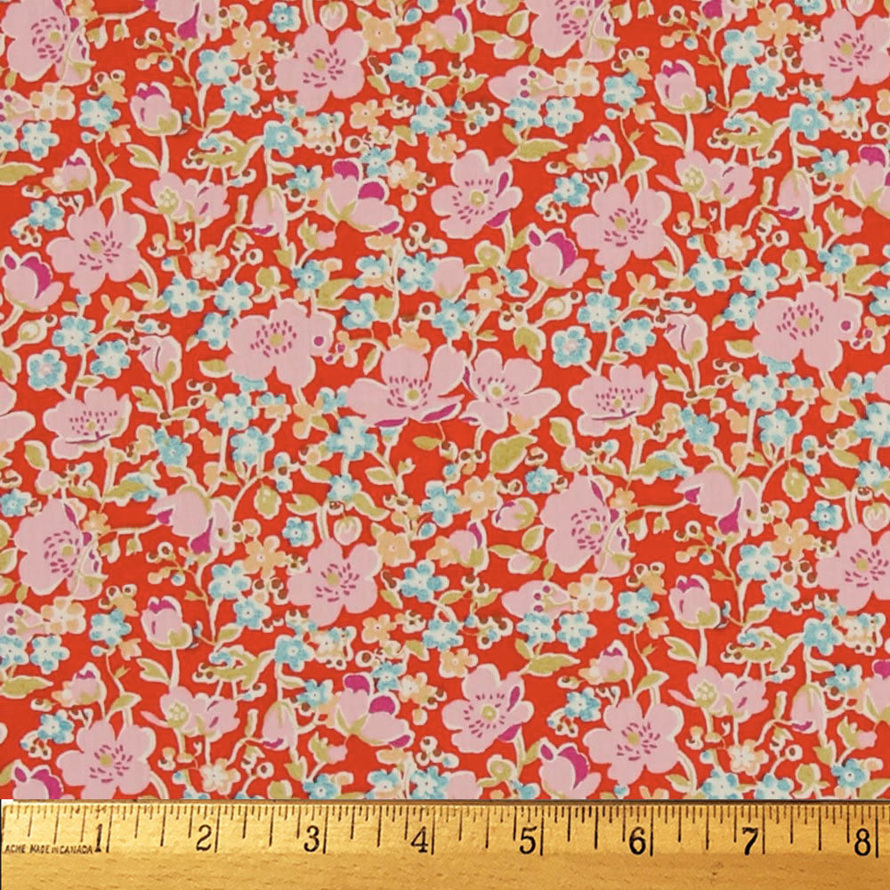This vibrant Liberty print is unusual; its looser design (no precise outlines) gives it a watercolour-like feel. The colour scheme is stunning and joyful. I think this an excellent print for clothing (there's a photo of a little top I made with this fabric so you can see the scale better).