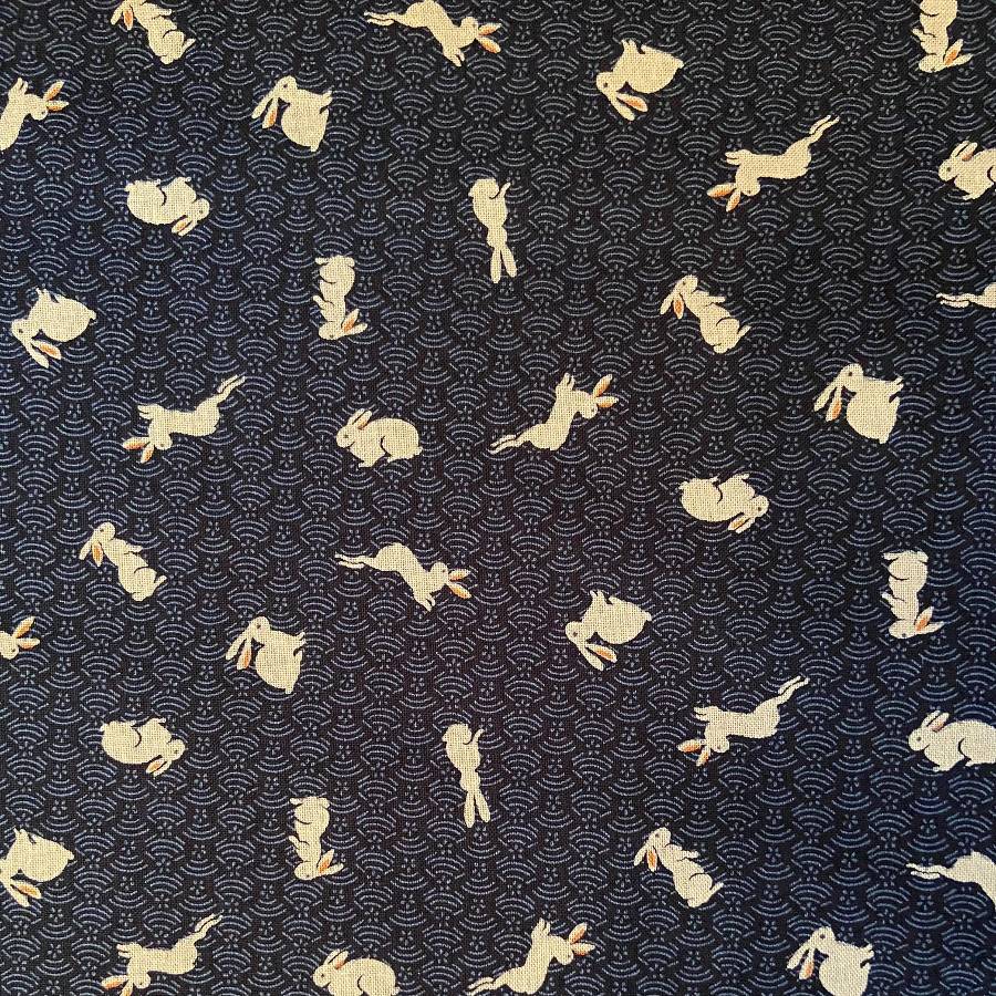 Sevenberry is a wonderful collection of Japanese fabrics, many mixing tradition with whimsy. This indigo print features tiny bunnies jumping through light blue waves.