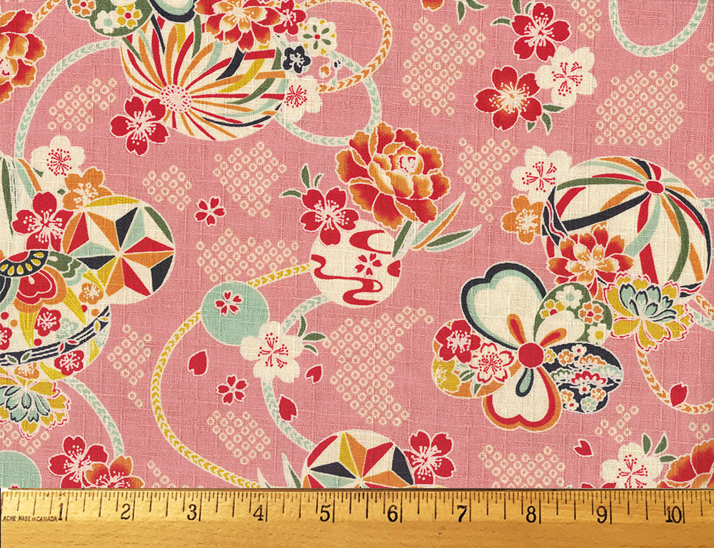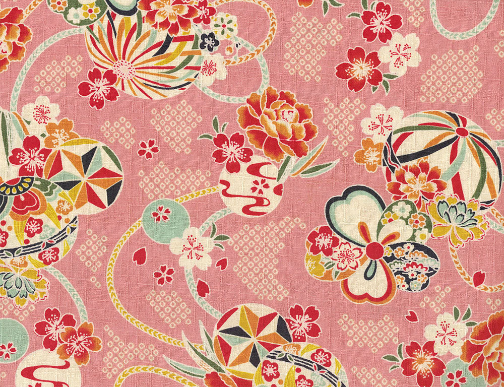 This gorgeous traditional Japanese print is from Hokkoh Japan's OSKikka line. OSKikka fabrics are known for their intricate and beautiful prints, often featuring floral, botanical, or stylized patterns.