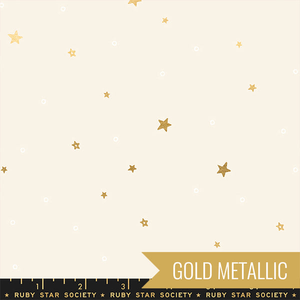 From the joy-filled "Birthday" collection by Sarah Watts for Ruby Star Society, this fabric is simple and celebratory; gorgeous gold stars on rich creamy background. This fabric is printed with beautiful metallic gold.