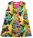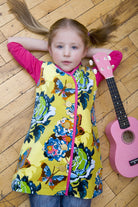 This brand new dress is designed for comfort and versatility in the cooler months. Made of beautiful quality velvet in a gorgeous print, and fully lined in bright cotton, this dress is designed to last for years, fitting as a dress or tunic, and layering beautifully.
